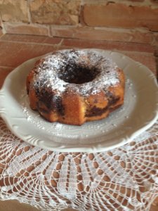 A massza és a kötött tészta kikeverését hablapát használatával célszerű elvégezni, mert a tészta állaga nagyon tömör. Amint az összekeverés megtörtént kanalanként egy fehér egy fekete gombócot, kanalaztam a kuglóf formába. A sütőt előmelegítettem 185 ° C fokra és a kuglófot 45 percig sütöttem.